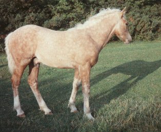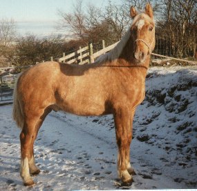 Sire: Deicin King Flyer by Cippyn Red Flyer Dam: Deicin Ladi Pride by Llanarth True Briton Orbit covered all our mares for several years but the elusive palominos were few and far between, infact only 2 Terackie Rose (ex Aberlogin Polly) and Clements Midas (ex Blaenteifi Myfanwy) he did however produce an outstanding cremello colt when bred to Aberlogin Polly one year "Terackie Winter Shadow" who then went on to be our stud stallion, knowing we were guaranteed palomino foals from our chestnut mares was an added bonus. When we saw the first foals from "Winter Shadow" the decision was made to geld Orbit and ride him instead.