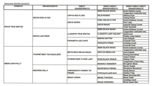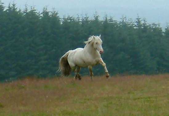 Terackie Winter Shadow is our young homebred cremello section D stallion He is by our palomino stallion (now gelded and sold) Deicin True Briton 42114 ( by Deicin King Flyer and out of Deicin Ladi Pride by Llanarth True Briton ), and out of our lovely palomino mare 97740 Aberlogin Polly ( by Thorneyside The Equalizer and out of Redfern Dolly by Gwendraeth Robert ap Frenin ) He now stands at about 14.2hh, his sire is 15.1hh and his dam 14.2hh. He is a real gentleman who will cover his mares in hand or will run out with the mares and foals as he does most years. We covered one mare with him in 1999 being Terackie Madam Xantia and she produced a very smart palomino colt foal who was sold by the time he was 3 days old. Winter has now proved himself to be a good stock getter time and time again and covers all our sec D and some sec A mares he is a consistent producer of good natured quality foals and really stamps his stock. Following photos taken July 2005