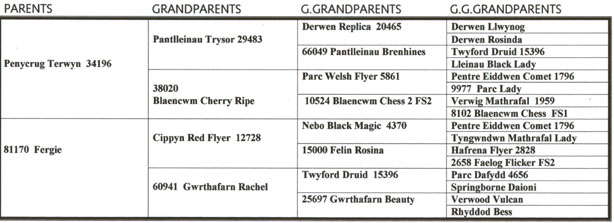 Dam: 81170 Fergie by Cippyn Red Flyer 12728 & out of Gwrthafarn Rachel Charm is a very sweet natured chestnut filly with two white socks and a blaze, she has plenty of bone and feather combined with good confirmation and height and a temperament second to none. Her breeding is exceptional going back to Cahn Dafydd, Parc, Nebo, Brenin Gwalia and Llanarth to name but a few. Charm has now been tested in foal to Terackie Winter Shadow and will hopefully produce us a palomino foal in April 2001. What a stunner she was....