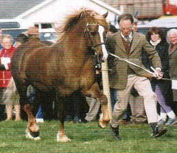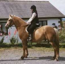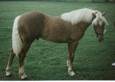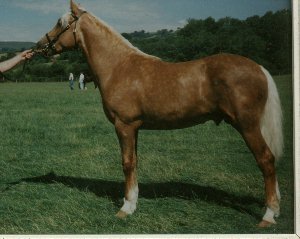 Sire: Deicin King Flyer by Cippyn Red Flyer Dam: Deicin Ladi Pride by Llanarth True Briton Orbit covered all our mares for several years but the elusive palominos were few and far between, infact only 2 Terackie Rose (ex Aberlogin Polly) and Clements Midas (ex Blaenteifi Myfanwy) he did however produce an outstanding cremello colt when bred to Aberlogin Polly one year "Terackie Winter Shadow" who then went on to be our stud stallion, knowing we were guaranteed palomino foals from our chestnut mares was an added bonus. When we saw the first foals from "Winter Shadow" the decision was made to geld Orbit and ride him instead.