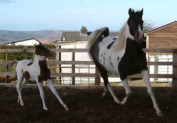 Getting ready to roll...wasn't expecting it either. Sweetheart has been bred to a homozygous pintabian stallion called Dakota Inkspots for a 2012 homozygous foal. Terackie Anisah
