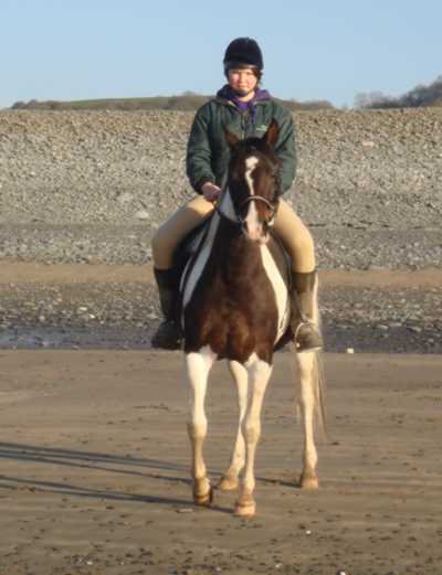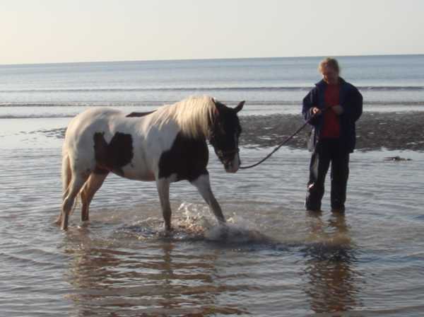 The winter of 2010/2011 saw Sweetheart going under saddle, she very quickly learnt the ropes and went for many hacks including on the beach....she hated the sea but happily rolled in a large warm rock pool.