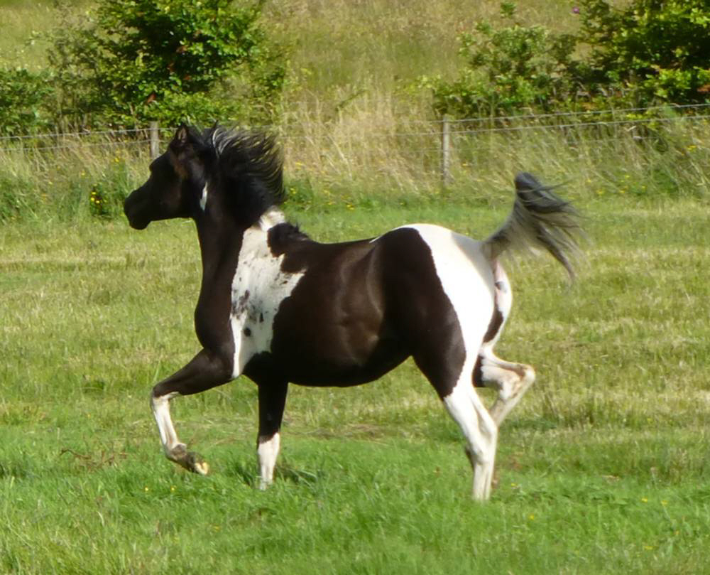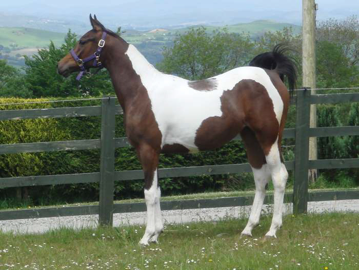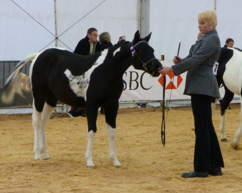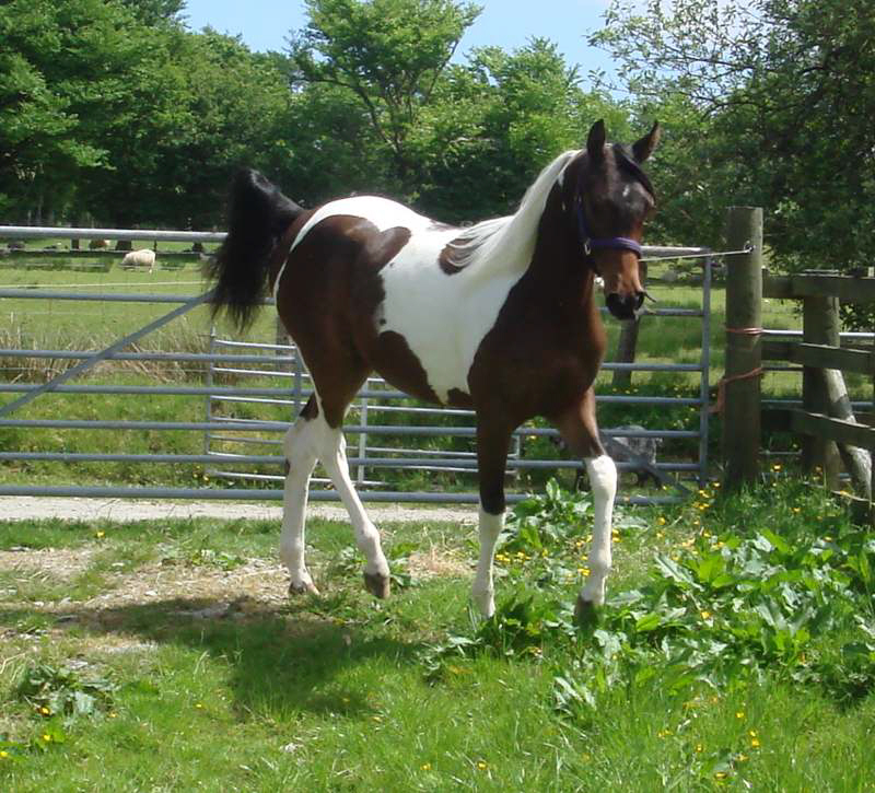Beautiful and rare black and white homozygous for tobiano filly 99.5% arabian, good in all ways, has been shown and is good for the show prep as well, quiet to travel and easy to load. We have planned to keep and show this filly ourselves but will sell her if the right home comes along because we have so many other youngsters to show, time doesn't allow for us to get them all out. She is extremely sweet to handle good catch and wears rugs etc. Lovely showy filly who should well and when older will guarantee a coloured foal to any stallion.. Registered with the AHS UK and eligible for pintabian papers with IPAR